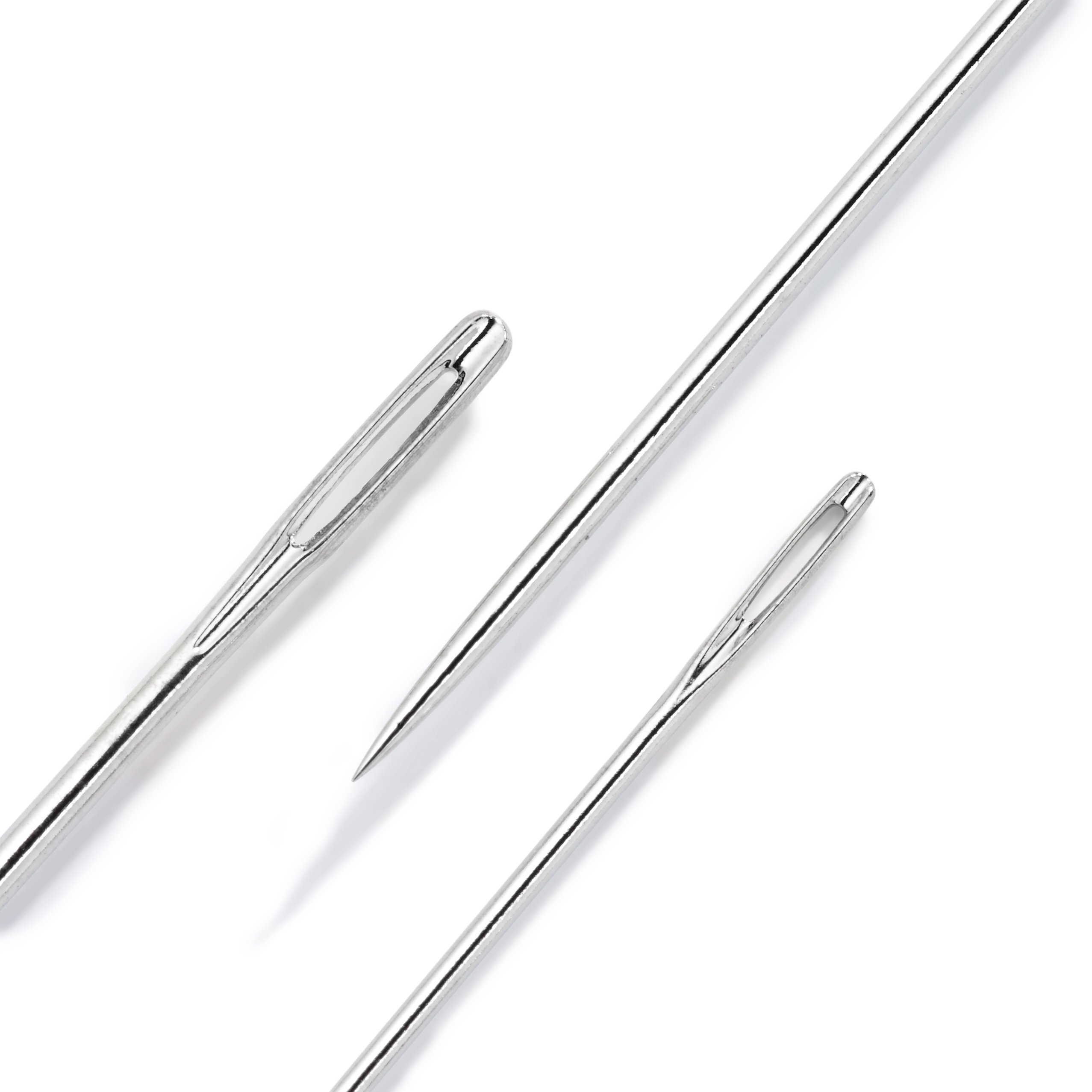 Nos aiguilles à repriser Prym en acier trempé sont des aiguilles longues pour les travaux de reprisage délicats. Ces aiguilles, similaires aux aiguilles à coudre par leur forme conique et effilée, sont cependant plus grandes et dotées d’un large chas, facilitant ainsi l’enfilage de fils épais ou de laine.