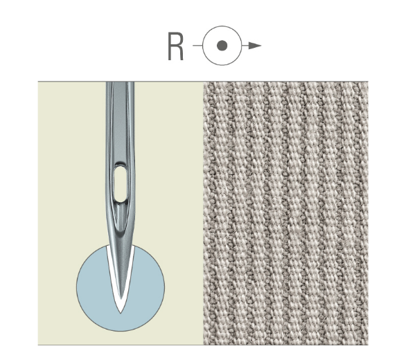 • Les aiguilles Groz-Beckert 134-35 R (désignations commerciales DPX35, DPX85, 2134-35, 2134-85, SY 7217, SY 7225, 32:10) sont spécialement conçues pour la couture de matériaux tissés moyens à lourds, ainsi que de cuir et de textiles techniques. Avec leur forme droite, une rainure longue et un évidement, elles assurent une couture fluide et fiable.