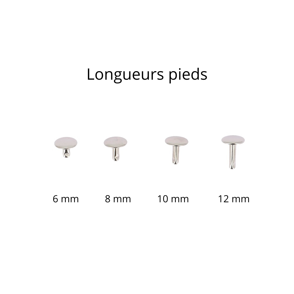 Les rivets double tête de 6 mm de diamètre sont des éléments de fixation robustes et esthétiques, idéals pour l’assemblage de cuir, textile et autres matériaux souples. Conçus pour offrir une finition soignée et une solidité optimale, ils sont disponibles en quatre longueurs de tige différentes afin de s’adapter à divers épaisseurs de matériaux. Déclinés en quatre couleurs, ces rivets permettent de personnaliser vos créations tout en garantissant une fixation fiable et durable.